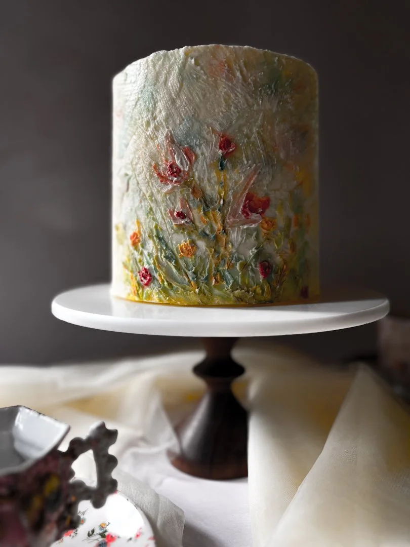 Baking itself is an act of care. Each layer uses high-quality ingredients and thoughtful pairings to provide a strong foundation for the artwork. When painting begins, food-safe pigments are applied by hand. Each layer of color and depth is added with intention.